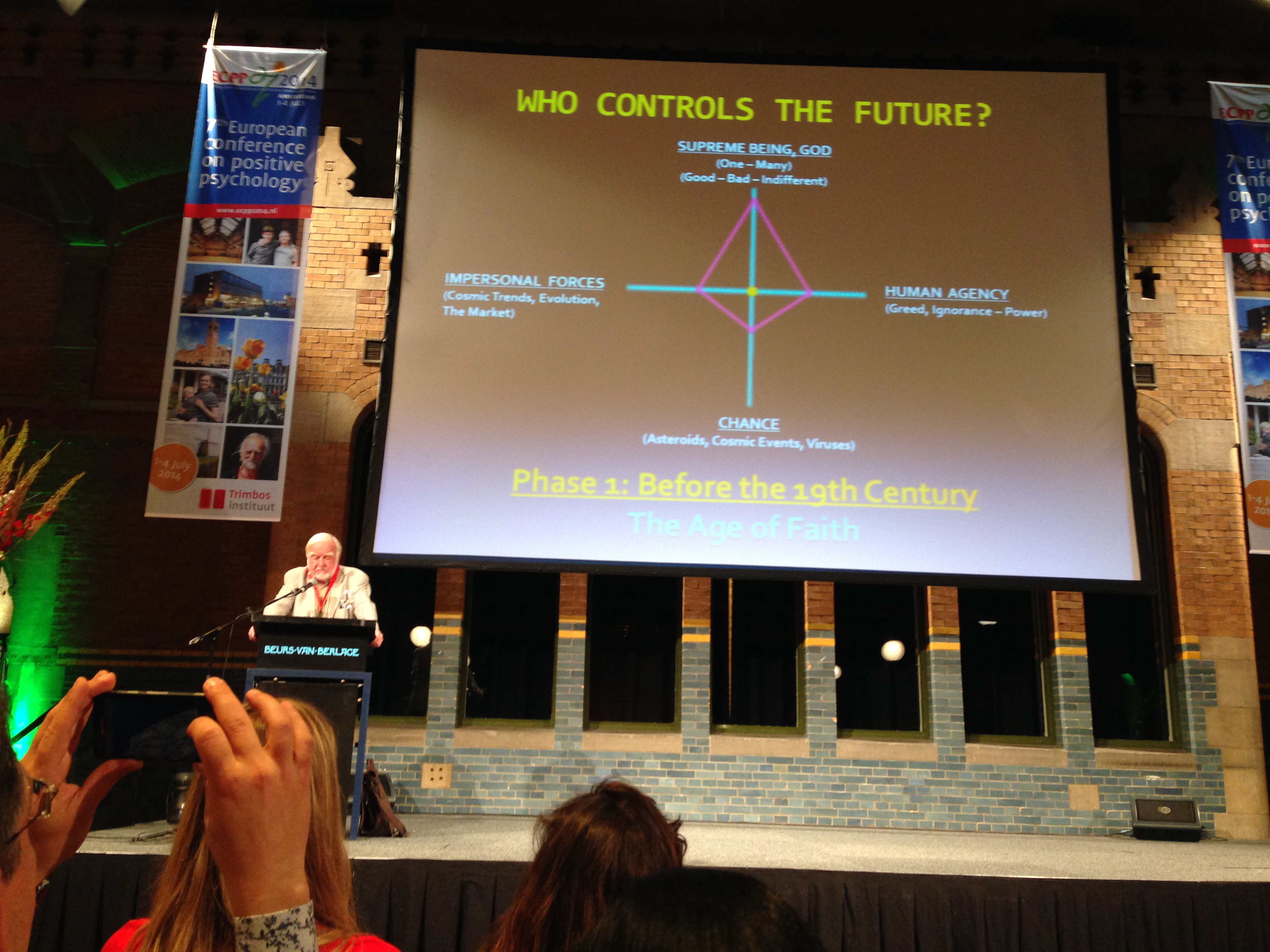 Автор концепции потока, один из создателей позитивной психологии и один из самых цитируемых и читаемых по всему миру современных психологов Михай Чиксентмихайи сделал увлекательный пленарный доклад на тему будущего, эволюции человечества и роли психологии на 7-ой Европейской конференции по позитивной психологии (Амстердам, Нидерланды, июль, 2014)