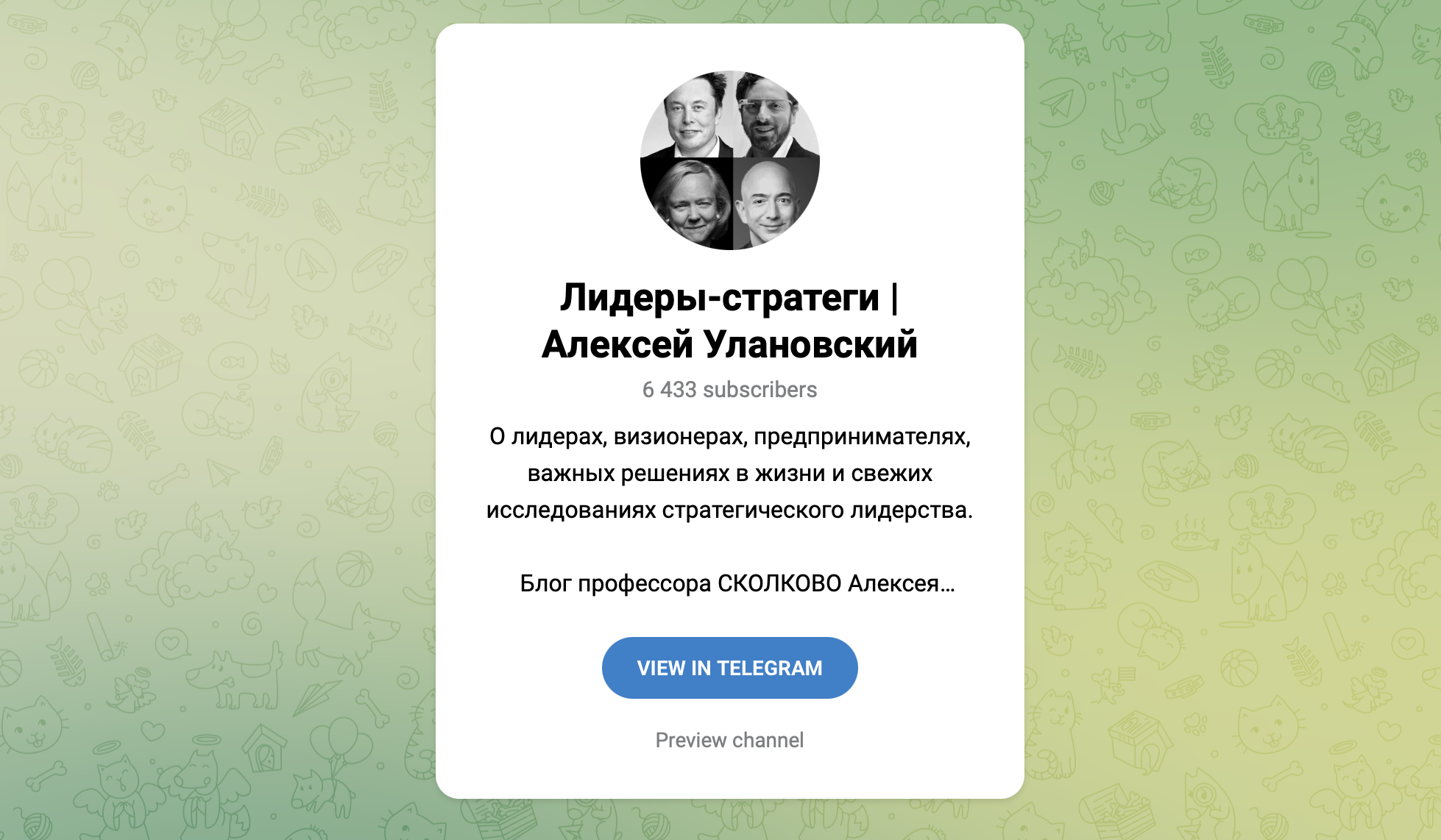 Создал дайджест по стратегическому лидерству, в котором будет всё самое свежее и развивающее по теме. О стратегических решениях в жизни и бизнесе, уроках лидеров прошлого и свежих глобальных исследованиях стратегии, лидерства и высших эшелонов власти.